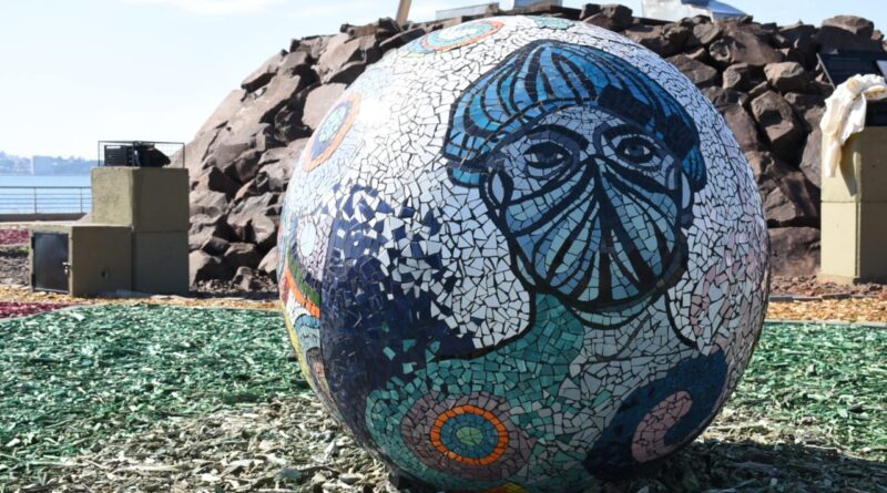 La obra conmemorativa es una esfera de mosaicos y representa el reconocimiento de los misioneros a los hombres y mujeres del sistema sanitario. El monumento fue creado por el equipo del área de Artes del Fuego del Parque del Conocimiento, forrado con esmaltes y pedacitos de cerámica o teselas colocados uno por uno a mano. El dibujo del rostro en la obra es del artista plástico Nadalino Rioja Huayra Nahuel, y el mosaico fue realizado por la ceramista Evelyn Ventosinos