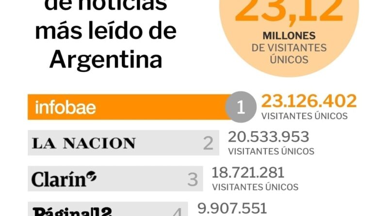 En tanto, La Nación -que desplazó a Clarín hace un tiempo como el segundo diario más leído- le sigue con un total de 20,53 millones de visitas únicas y Clarín con 18,7 millones.