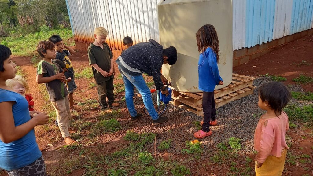 Finalmente, durante el mes de agosto, se terminaron de confeccionar una cosecha de agua de lluvia junto a técnicos locales, obras que permitirán almacenar grandes cantidades de agua para una gestión comunitaria segura y sostenible. Frente a toda la comunidad y con la presencia del intendente de la localidad de Garuhapé se verificó el buen funcionamiento de las obras y se capacitó a las familias en el cuidado y beneficios de este tipo de instalaciones que tienen un impacto ambiental altamente positivo. La posibilidad de realizar un uso eficiente del agua en localidades con dificultades para su acceso, es vital para la salud y el desarrollo de la comunidad entera.