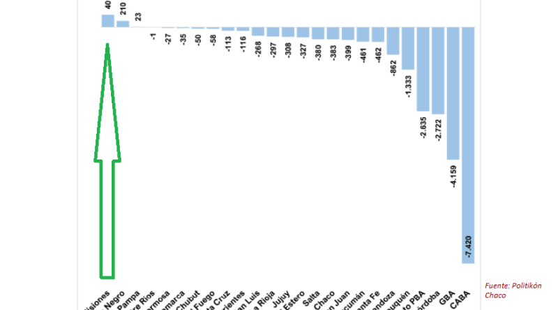 La consultora Politikón Chaco difundió hoy un informe donde revela que Misiones fue prácticamente la única provincia del país que tuvo un crecimiento de la cantidad de empleos registrados (en blanco) del país en el primer trimestre (enero-marzo) del año, un efecto generado por las fronteras cerradas combinadas con los programas Ahora que agresivamente lanzó el Gobierno de Misiones para apuntalar la actividad.