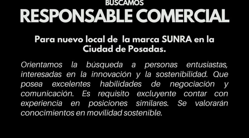 Responsable Comercial para nuevo local de la marca SUNRA