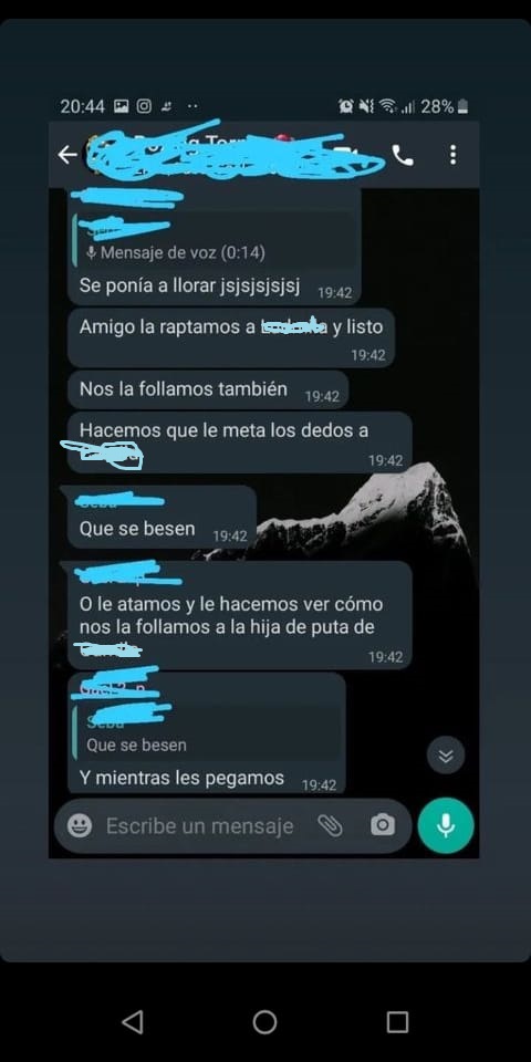 “La atamos y la hacemos gritar como la p-…que es”, dice uno a sus amigos, en una de las frases menos subidas de tono.
