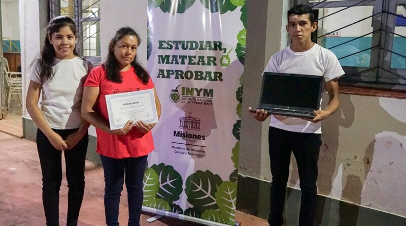 El INYM otorga becas de estudio a hijos de trabajadores y productores de yerba mate, y en este 2021 premió con la entrega de notebooks a los tres mejores promedios que cursaron el último año. El primer lugar fue para Mercedes Sabina Verdún, del “Colegio Antonio Biale”, en Colonia Liebig (Corrientes); en segundo lugar se ubicó Dana Beatriz Rujodski, de la EFA “Padre José Marx”, de Campo Viera (Misiones), y el tercer premio fue para Jonathan Gabriel Quevedo, de la EFA “Concepción de la Virgen María”, de la localidad de Santa María (Misiones).