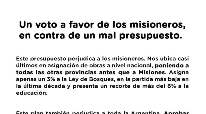 Obviamente no hay nada de irregular en votar en bloque con todo el partido. Pero como en Misiones durante la campaña el debate se centró en si las fuerzas nacionales obedecen o no a intereses nacionales, dejando de lado el interés de los misioneros, la cuestión del voto negativo al Presupuesto tomó otro cariz acá en la tierra colorada.