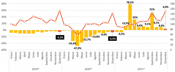 A pesar de la recuperación frente a 2020, el comercio pyme aún no logró reponer todo lo perdido ese año. Así, 2021 terminó 5,3% por debajo de 2019. Sólo un rubro, Artículos deportivos y de recreación, que se vio favorecido por los cambios en algunos hábitos que dejó la pandemia, vendió más que entonces.