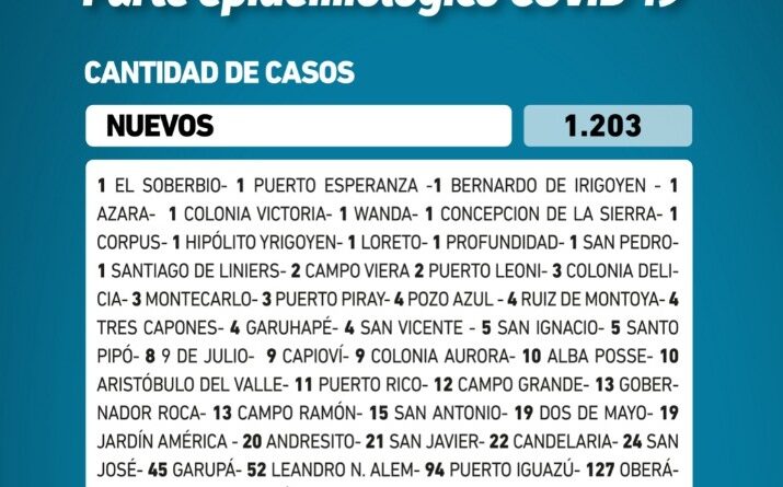 En el parte del viernes 14/1 las autoridades sanitarias de Misiones informaron un nuevo récord de casos diarios que ascendió a 1.203.