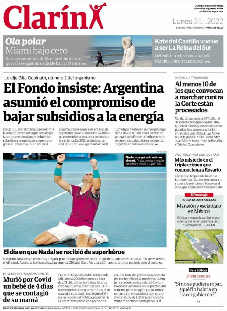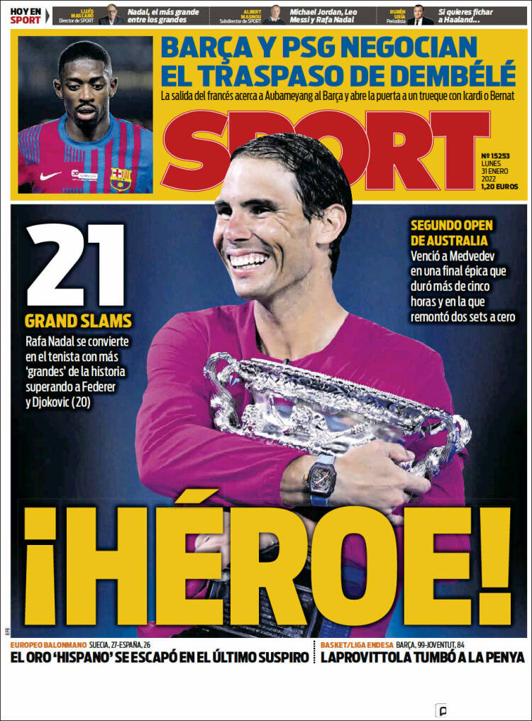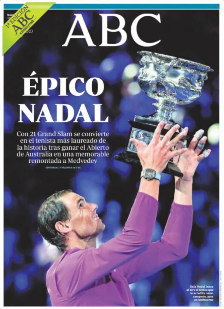Argentina, Clarín. “El día que Nadal se recibió de súper héroe”. Mucho más que un triunfo. “Hace un mes y medio no sabía si volvía a jugar”, dijo.