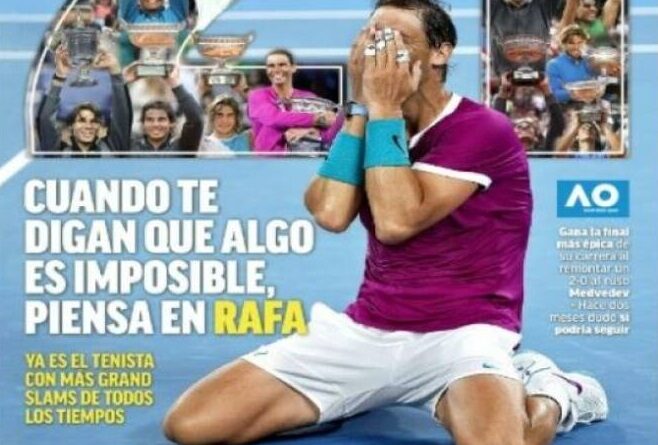 “Cuando te digan que algo es imposible: piensa en Rafa”. Ese fue el título de portada de hoy del diario deportivo Marca, el más popular de España.