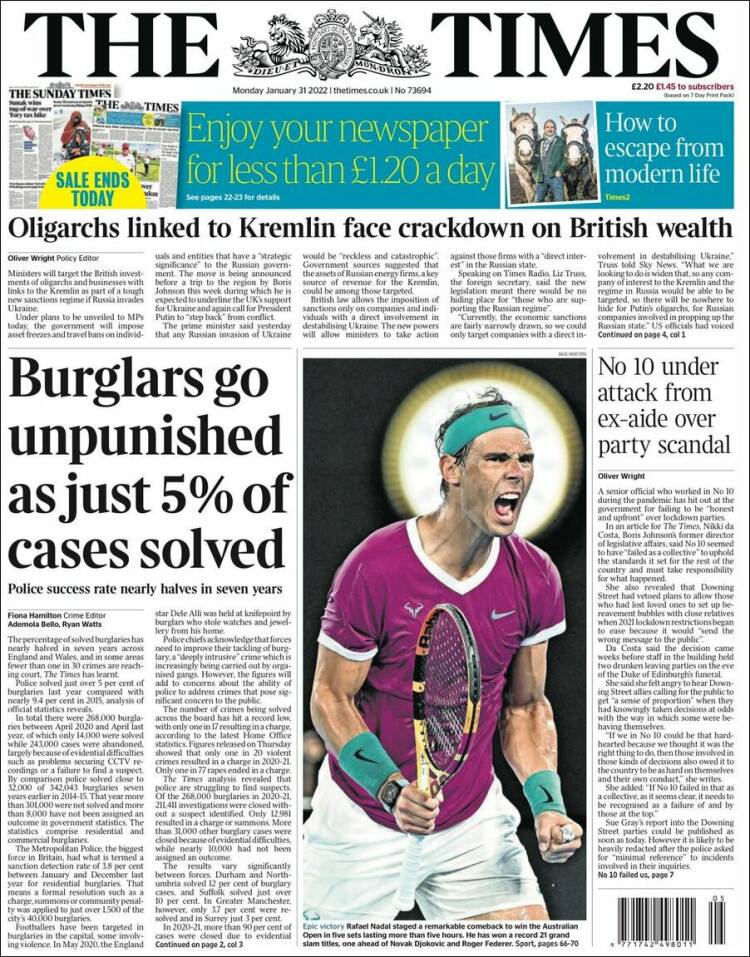 Inglaterra. The Times. “Rafael Nadal gana tras una extraordinaria recuperación”.