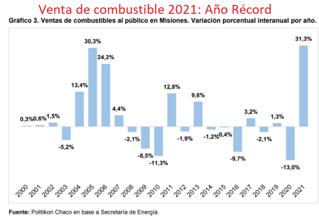 En Misiones, ya con las fronteras casi totalmente abiertas y sin requisitos de PCR para ir a Brasil, en diciembre la venta de naftas aumentó 54,7% a unos 52.246 metros cúbicos vendidos. Fue también un récord mensual histórico que superó a la anterior marca, de noviembre 2021. De septiembre para atrás, con fronteras cerradas, en Misiones nunca se despacharon más de 39.000 metros cúbicos por mes.