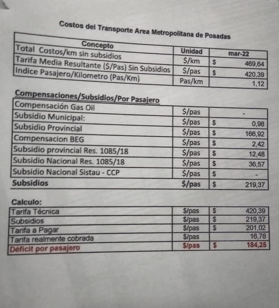 Actualmente el boleto en Posadas cuesta 20 pesos con la SUBE y 28 pesos sin el plástico, y es el más barato del país sólo superado por la primera sección de los colectivos del AMBA que cobran 18 pesos con mayores subsidios de Nación.