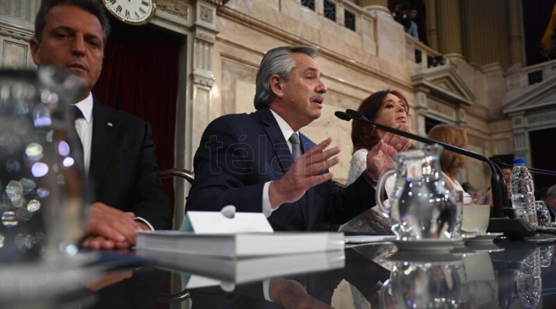 Acompañado en el estrado por la vicepresidenta Cristina Fernández de Kirchner y por el presidente de la Cámara de Diputados, Sergio Massa, el jefe de Estado también hizo referencia al desarrollo productivo con una “transición ecológica justa”, a la economía popular, a proyectos para revitalizar la educación postpandémica, a la infraestructura, a la ciencia y tecnología.