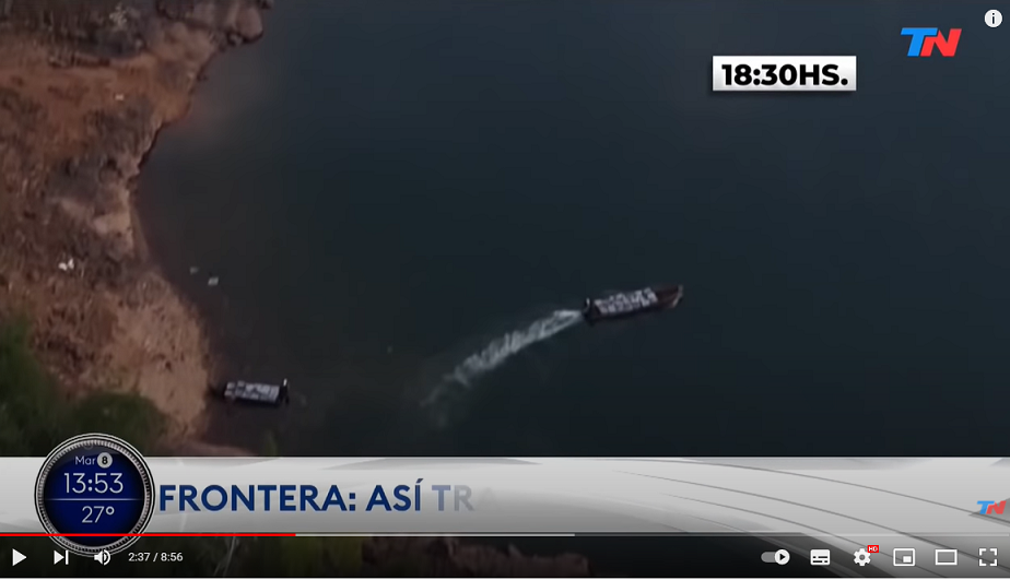 Como pocas veces, la producción de este programa -que venía trabajando en este reporte desde hace tres meses- logró imágenes impactantes del contrabando “in fraganti” en la Triple Frontera, donde se puede ver a una lancha tipo gomón abordado por un grupo muy nutrido de paseros con sus bultos de mercadería. También, imágenes con cámaras infrarrojas con el desplazamiento de este tipo de embarcaciones en la noche.
