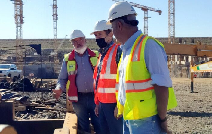 Ríos y Buonanno le brindaron a De Vido toda la información técnica correspondiente al avance de los trabajos que se llevan adelante. De Vido recorrió las oficinas técnicas y el obrador, se reunió con el personal que allí se desempeña, y verificó los trabajos que se ejecutan en lo que será la Casa de Máquinas, especialmente los preparativos para el hormigonado del bloque C uno y C tres.