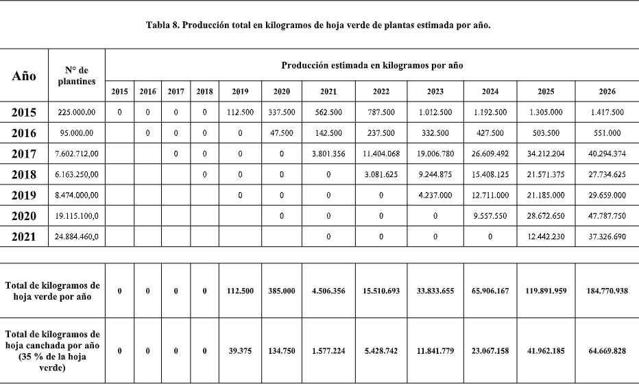 TOTAL209.276 hectáreas1.102.000.000 kilos hoja verde