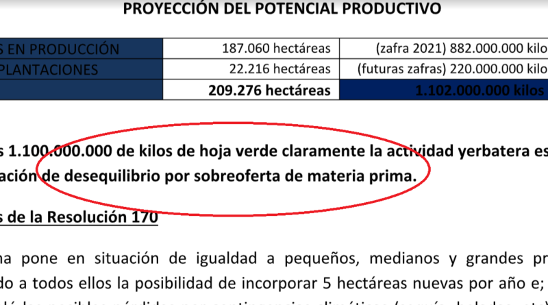 Con esos 1.100.000.000 de kilos de hoja verde claramente la actividad yerbatera estaría en una situación de desequilibrio por sobreoferta de materia prima.