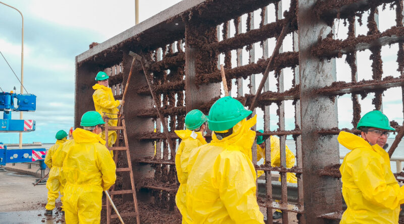 Continuando con las tareas de mantenimiento en la Central Hidroeléctrica Yacyretá, se llevó adelante la limpieza de rejas en la Unidad Generadora n° 2.