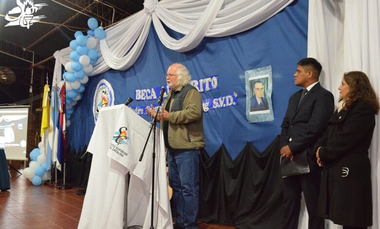 “Nos formó, nos enseñó valores, coherencia, le debemos mucho”, señala. Y no lo dice por decir, el motivo de su visita a Posadas fue entregar 10 becas para estudiantes del Santa Catalina, buscando devolver un poco de lo que recibió. Como no podía ser de otra manera, llevan el nombre de “Beca Francisco Wessling”.