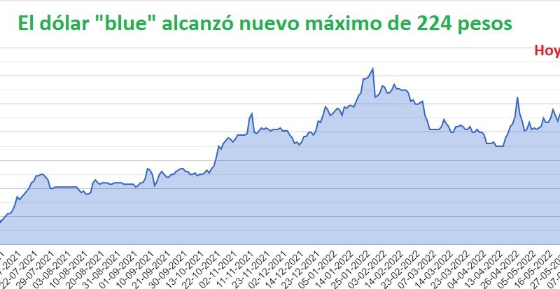 El dólar “blue” alcanzó hoy los 224 pesos para la compra, un nuevo máximo de todos los tiempos, en las cuevas y arbolitos de la city porteña y también en el circuito informal de Posadas, relevado por Plan B.
