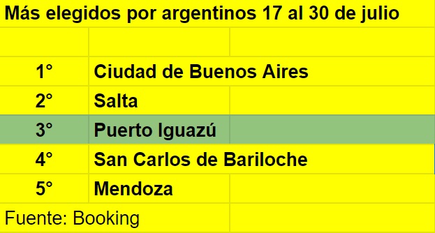 Además, Iguazú desplazó en el podio nada menos que a Bariloche y Mendoza, que quedaron en cuarto y quinto lugar, respectivamente.