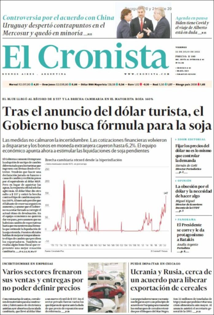 Viernes 22/7. Cómo reflejan las tapas de los diarios la corrida cambiaria y la crisis política A continuación, repasamos las tapas de los diarios del viernes 22 de julio de 2022. Cargando visitas...