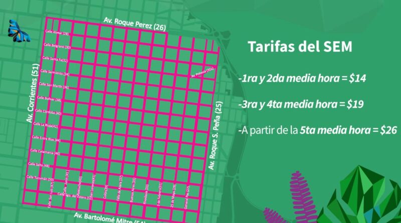 Desde hoy las calles Tucumán y Santiago del Estero pasan a estar incluidas en el Sistema de Estacionamiento Medido (SEM), con lo cual en toda el área delimitada por las Cuatro Avenidas (Roque Pérez, Mitre, Corrientes y Sáenz Peña) regirá este sistema.
