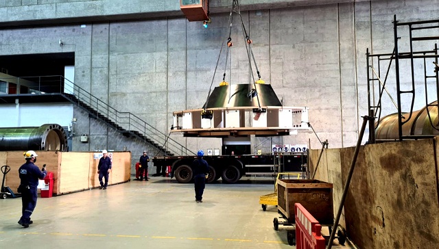 Consultado sobre dónde se están fabricando las turbinas, Ríos dijo que “esencialmente, las turbinas se fabrican en China. Los ejes son de Italia y de España. Los compartimentos y rejas se fabrican en Argentina. Los componentes fijos se fabrican en Paraguay. Los bobinados de los generadores, en Brasil. Los transformadores de salida de potencia se fabrican en Croacia. El puente grúa está en viaje desde la India hacia la zona de obra. Esta se irá montando y estará en las próximas semanas”.