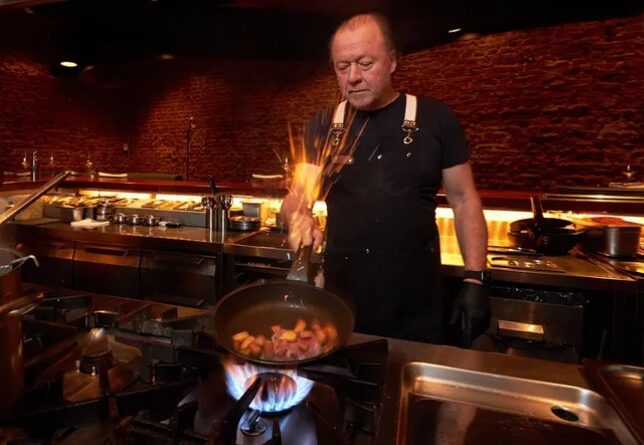 En un abrir y cerrar de ojos comienzan a llenarse las mesas del restaurante. Piñeyro sigue probando: primero un pedazo de bife, luego un helado, luego toma agua y después lleva cuatro platos a una familia sentada frente a la cocina. “Cuidado, paso con cuchillo”, grita a cualquier distraído en su camino. Deja los instrumentos y vuelve a apoyarse en la barra. “Bueno, tengo dos minutos”, advierte y mira su reloj inteligente antes de quedarse charlando media hora más.