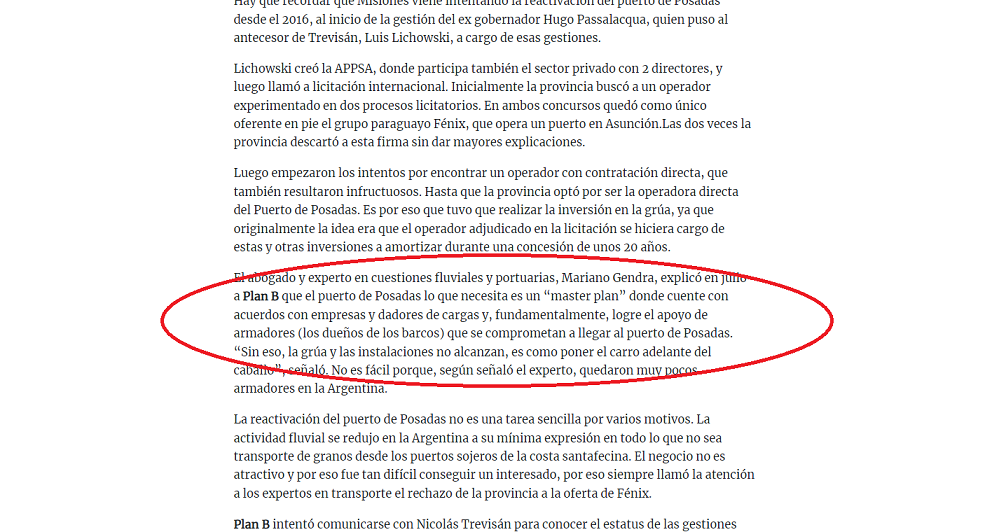 Como viene advirtiendo Plan B en distintas notas e informes, la APPSA se ha embarcado en realizar estas inversiones en infraestructura como la grúa de contenedores y un vehículo Reachstacker sin tener la seguridad de que habrá barcos que llegarán a Posadas para buscar la carga y tras rechazar en dos licitaciones a la empresa paraguaya Fénix, sin explicaciones oficiales.