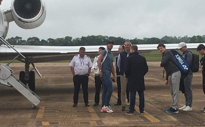 El Aeropuerto de Iguazú recibió hoy temprano a las dos estrellas. Los tenistas permanecerán únicamente hoy en Cataratas ya que mañana animarán un partido en el Arena Parque Roca, de Villa Soldatti en Buenos Aires.