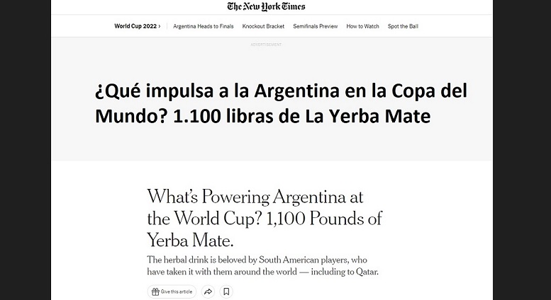 ¿What’s powering Argentina at the World Cup? 1.100 pounds of Yerba Mate, dice la columna firmada por el periodista James Wagner.