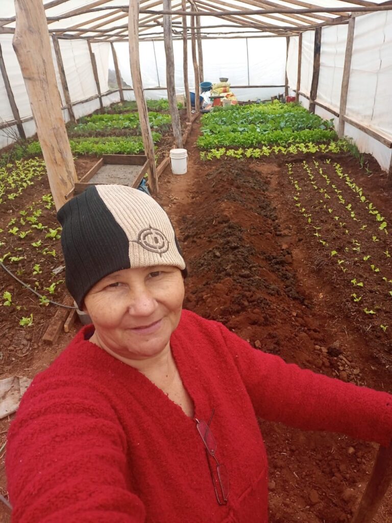 “Usted me preguntó cuántos años tengo, tengo 54 y parezco como de 80. Tengo la columna destruida por el trabajo pesado de la chacra. La mayoría de las mujeres del mundo poseen cobertura cuando tienen hijos, pueden quedarse en la casa y son asistidas; la mujer rural no, tiene que parir, volver a la casa y seguir como si nada, por eso muchas estamos mal de salud. Hay chicas de más de 30 años con problemas en la columna y en los huesos lo que enfrentamos de sol a sol, porque si dejamos solo al esposo no da a basto.