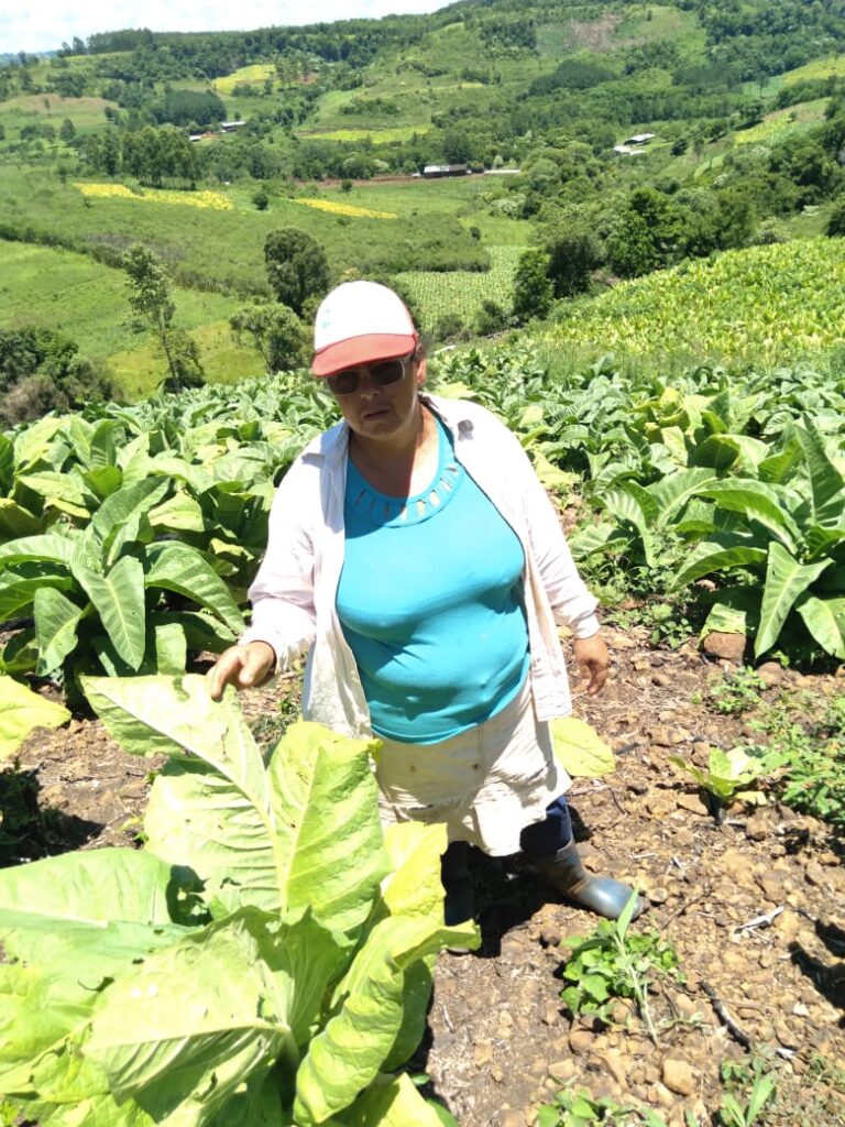 Con 54 años, ella trabaja a la par de su esposo en la misma tierra desde hace 34 años. Actualmente intenta sustituir la producción tabacalera por la frutihortícola : “Hacemos de todo un poco para vivir, el tabaco no lo dejamos todavía porque es lo único que nos asegura
