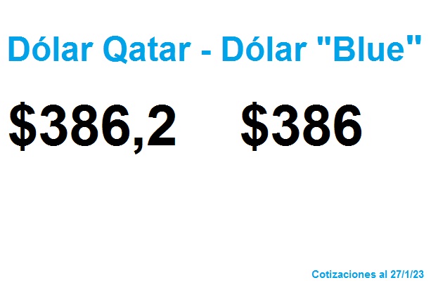 El Dólar Qatar, se denomina al tipo de cambio al que se le agregan algunos impuestos más para encarecerlo que el Dólar Tarjeta. TIene un valor hoy de 386,2 pesos.