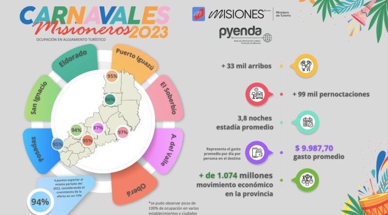 El fin de semana XXL de Carnaval generó un movimiento económico de 1.074 millones de pesos en Misiones, según la medición del Ministerio de Turismo local.