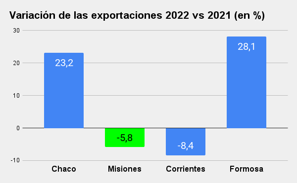 Misiones fue en 2020 y 2021 la provincia más exportadora del nordeste, pero con la caída del 5,8% quedó en el segundo lugar, y la que volvió a tomar la cima, como en el 2019, fue Chaco, con ventas de 516 millones de dólares, que representaron 40,7% de los envíos totales de la región.