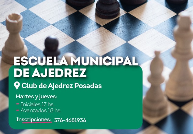 La Dirección de Deportes invita a quienes quieran inscribirse a las clases anuales de la Escuela Municipal de Ajedrez en sus dos sedes ubicadas en el Club de Sarmiento y en el Club de Ajedrez de Posadas.