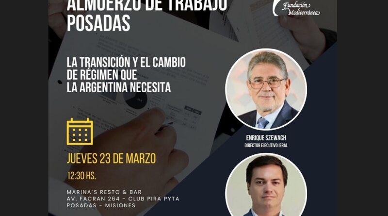 “La transición y el cambio de régimen que la Argentina necesita”, se titula la charla, que también tendrá como protagonista a Gerardo Alonso Schwartz, el economista jefe para el NEA del IERAL/Fundación Mediterránea.