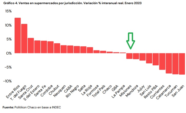 Es un dato negativo, teniendo en cuenta que Misiones es uno de los nueve distritos que registró bajas, mientras que el resto de las provincias experimentaron leves alzas de las ventas en términos reales.