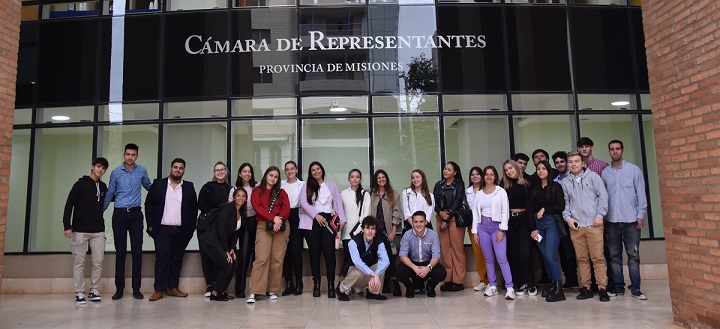 Cerca de 30 estudiantes de la carrera de abogacía de la Cuenca del Plata participaron de la visita guiada a la Cámara de Representantes y fueron recibidos por las diputadas provinciales Yamila Ruiz y Soledad Balan.