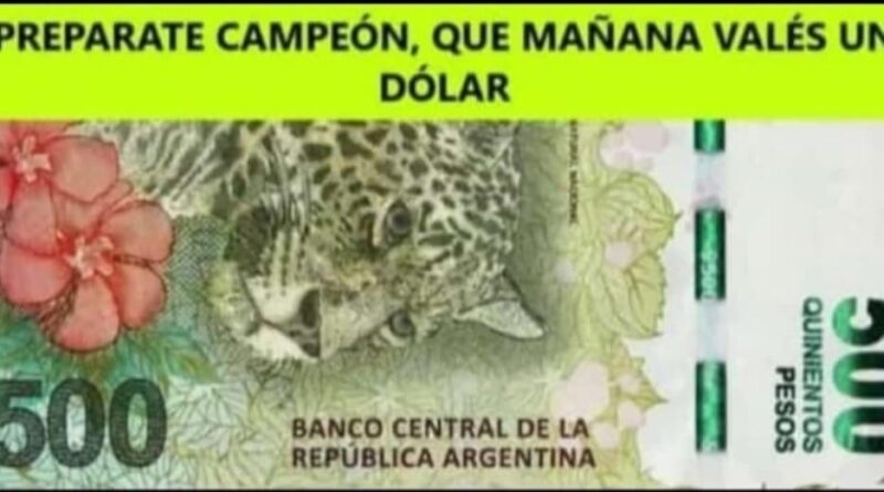 A medida que el dólar “blue” fue escalando esta mañana hasta quedar a las puertas de los 500 pesos, empezó a hacerse viral en las redes los memes con el billete de 500 pesos con la imagen del Yaguareté.