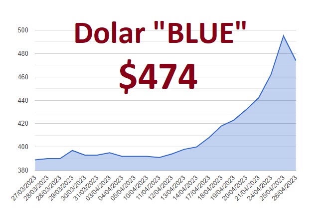 De esta forma, el dólar “blue” que había cerrado ayer en $495 pesos, hoy retrocedió hasta quedar en 474 pesos en el promedio de las cotizaciones de “cuevas” y “arbolitos” de la Ciudad de Buenos Aires.
