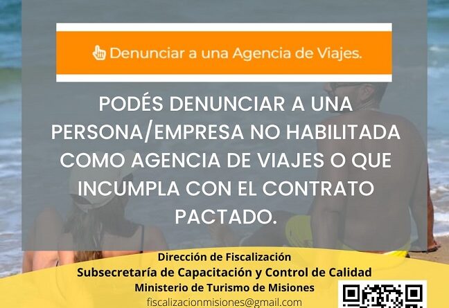 Esta herramienta se encuentra disponible en la página web institucional https://misiones.tur.ar/. En la pestaña “Información”, se debe hacer clic en la sección de “Agencias de viajes habilitadas” y se desplegará otra pestaña donde aparecerá el botón “Denunciar a una agencia”. Allí los interesados deben completar con la información solicitada para realizar su denuncia.