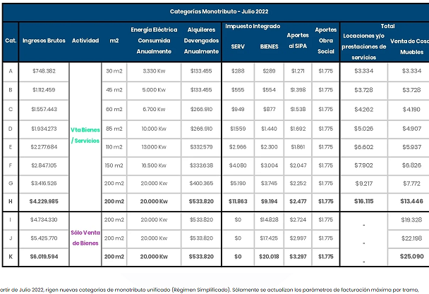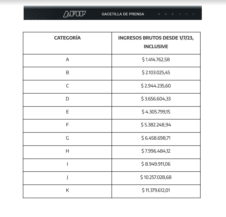 Las escalas del Monotributo que regirán desde Julio 2023, anunciadas hoy (8-6-2023)