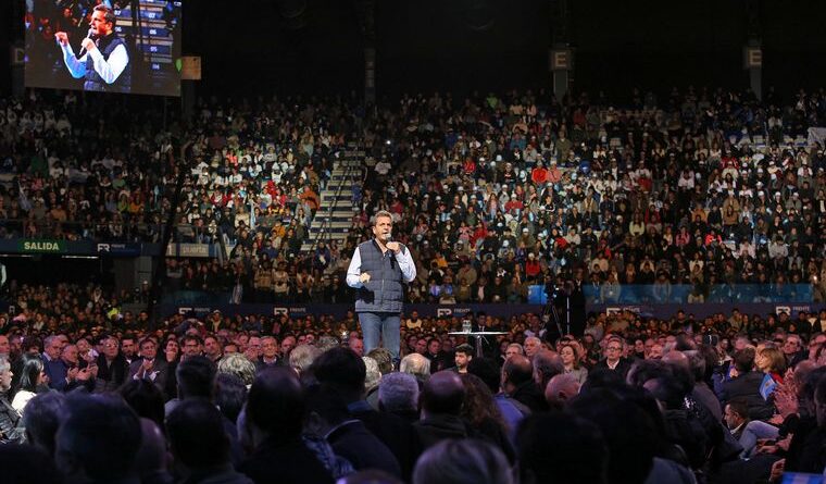 “Lo mejor para Argentina y para el FdT es la unidad, pero si se decide que haya PASO, anótennos. Vamos a estar poniendo lo mejor de nosotros y buscando los mejores acuerdos”, aseguró Massa al pronunciar su discurso en este cónclave que se desarrolló en el estadio Arenas (Ex DirecTV) de la localidad bonaerense de Tortuguitas, partido de Malvinas Argentinas, donde hubo 12 mil militantes dentro y 8 mil personas en las zonas aledañas, según la organización.