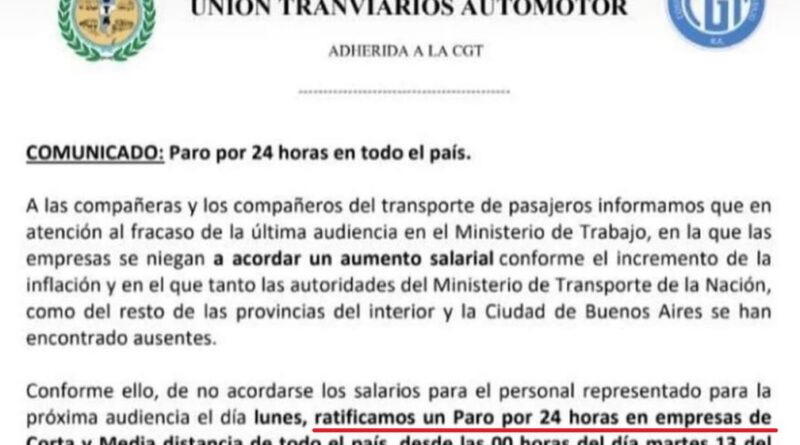 “Acaba de terminar audiencia UTA-FATAP sin acuerdo por tema guarderías y sin acuerdo por tema paritario. UTA decreto PARO a partir de la 0 horas del martes 13 de Junio. Esto es pasada la medianoche de hoy”, señalaron fuentes que participaron del encuentro.