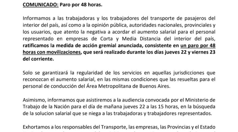 Finalmente no hubo acuerdo entre la UTA, FATAP y el Ministerio de Trabajo y el gremio de los choferes realizará un paro que afectará a los colectivos de Posadas y todo el interior del país desde medianoche y por 48 horas.