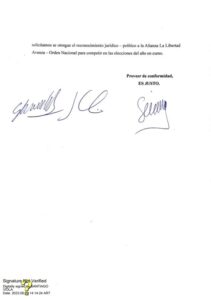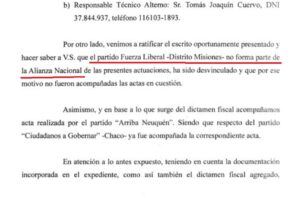 En el diálogo con Alvarenga, la libertaria explicó que recibió una nota firmada por Karina Milei, la hermana y una de las personas de confianza del León, donde se afirma que “el partido Fuerza Liberal –Distrito Misiones- no forma parte de la Alianza Nacional”.