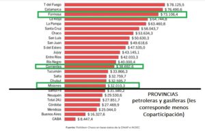 Es el distrito que menos recursos obtuvo per cápita, excluyendo a las provincias ricas y/o petroleras o gasíferas, a las que no les corresponde tanta Coparticipación.