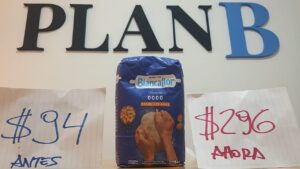 La harina se consigue en las góndolas del Cali por $296. Sin embargo, su precio hace un año, fue de $94. Esto nos indica que su inflación fue del 215%.